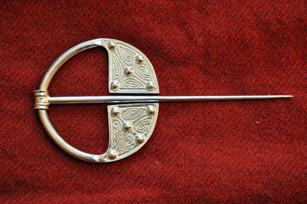 Copy of a Huge Viking cloak pin from Skaill bay in Orkney. Engraved dragon design on one side of each terminal and raised bramble.